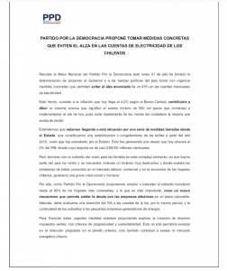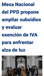 PARTIDO POR LA DEMOCRACIA (PPD) PROPONE TOMAR MEDIDAS CONCRETAS QUE EVITEN EL ALZA EN LAS CUENTAS DE ELECTRICIDAD DE LOS CHILENOS. por editortv | 05/07/2024 0 comentarios Compartir con: WhatsApp